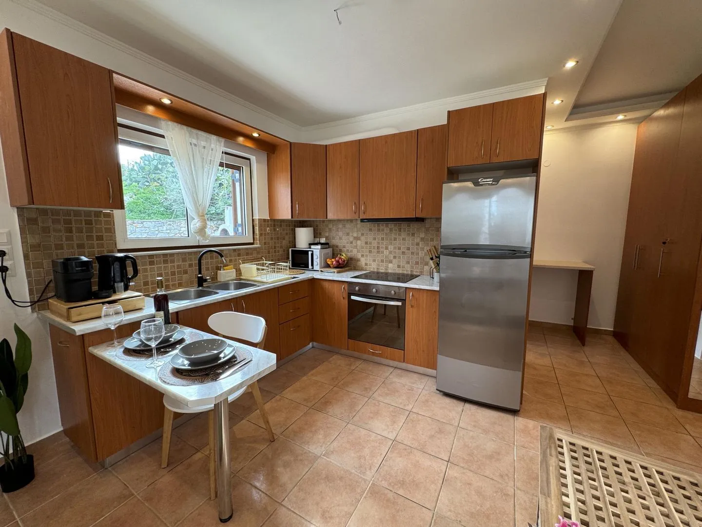 Two comfortable sun loungers are available at the communal pool – perfect for reading, dreaming and relaxing. The fine sandy beach of Mavrovouni is about 800 metres away, accessible via a charming path through the small alleys of the village.