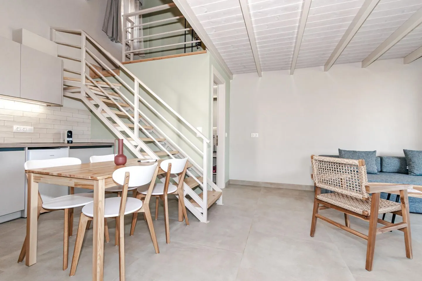 Next to the Family House are two semi-detached buildings with a total of four comfortably furnished Junior Houses. These two-storey, tastefully designed units impress with their bright, friendly atmosphere and offer ideal comfort for up to four guests. Soft pastels, selected woods, and modern, understated furnishings combine to create a harmonious and soothing interior.