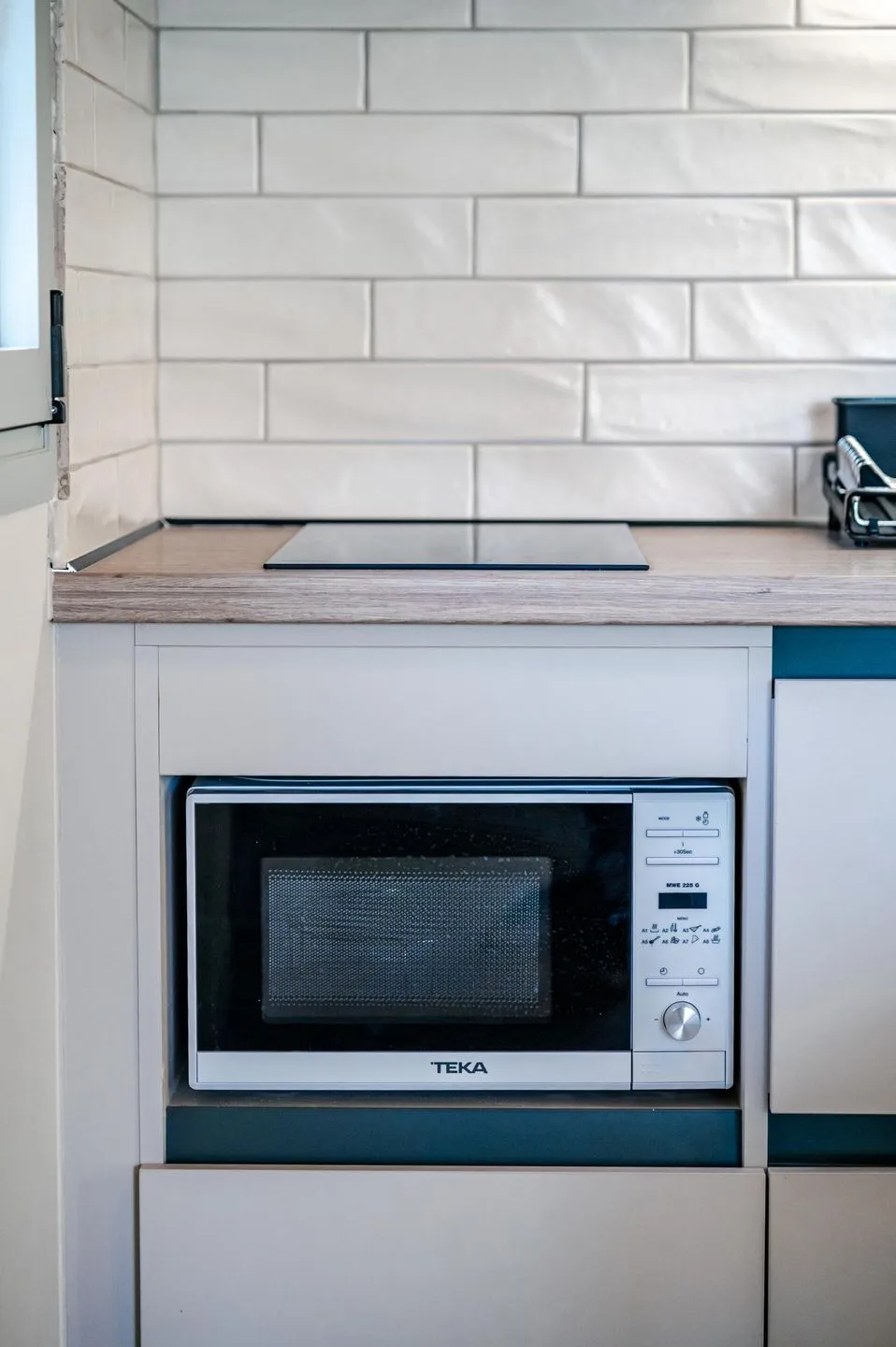 On the ground floor, guests are welcomed by an inviting living area: a stylishly designed living room with sofa bed that can be converted into two full-size single beds flows seamlessly into the dining area with adjoining open kitchen. The bathroom is located directly next to it. The upper floor features an open bedroom with double bed (no door; sloping ceiling 2.60–1.34 m), providing a cosy, calming retreat with gentle natural light.