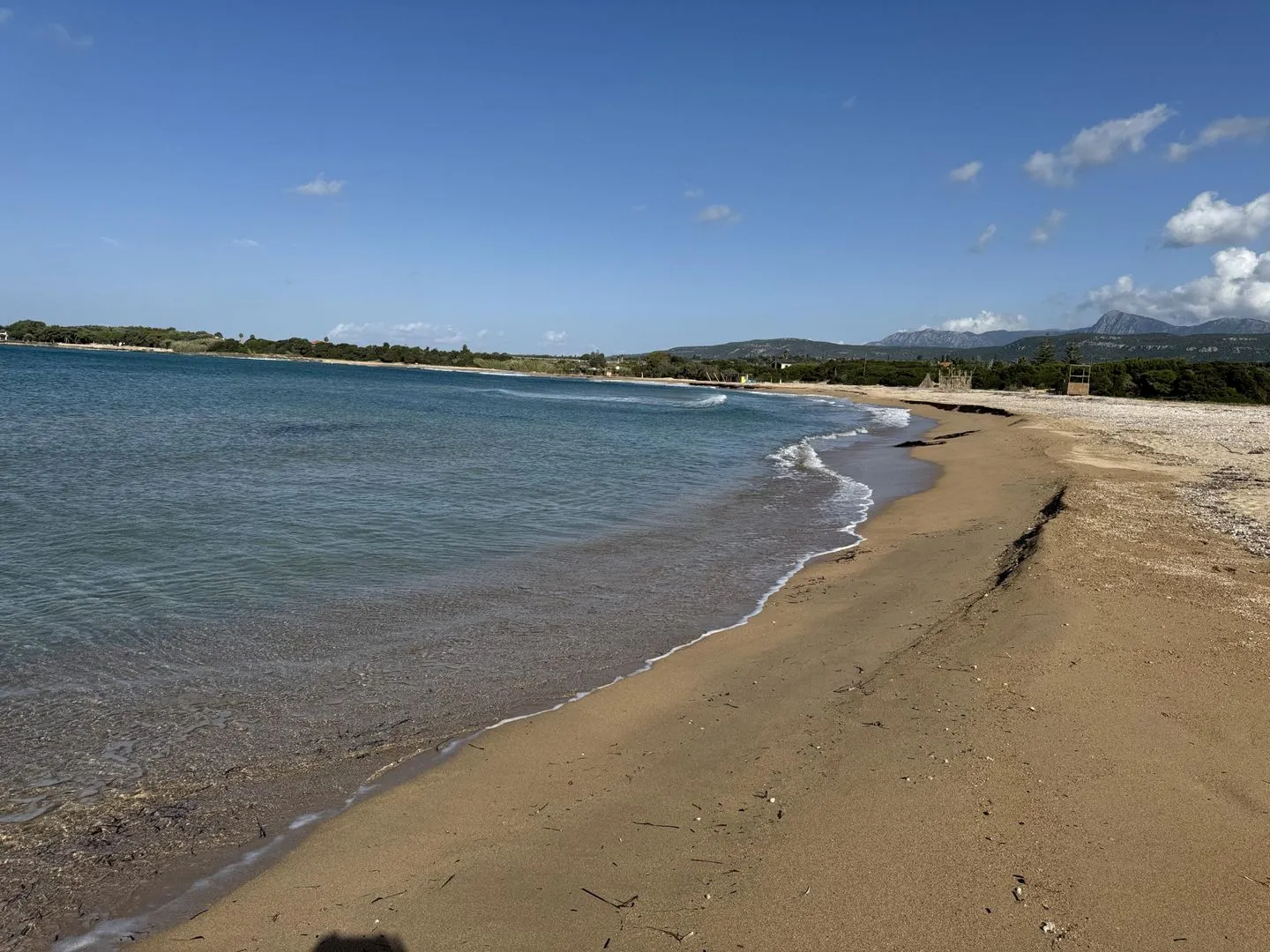 The southwestern coast of Messenia offers numerous sandy beaches with crystal-clear water – from long stretches of sand to small hidden coves. The nearest beaches are among the most beautiful in the region. Nearby Lagouvardos Beach is a spacious sandy beach surrounded by pine trees and an impressive mountain backdrop – ideal for swimming, surfing, canoeing, snorkelling, or fishing. Other beaches within a 20 km radius include the iconic Voidokilia with its semicircular bay, Goldcost (Mati) with fine sand, and the picturesque coves of Barlas, Vromoneri, Petrochori, and Romanos.
