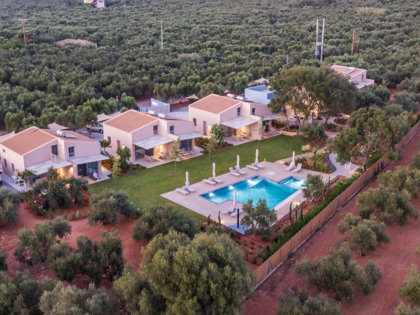 On the enclosed 7,000 sqm garden property, the six houses are arranged at a pleasant distance from one another along the shared pool. The ensemble includes an elegant Family House, two semi-detached buildings with a total of four charming Junior Houses, a small blue house serving as reception, and two additional small single houses. One of the small single houses is occupied by the young owner family during the summer season.