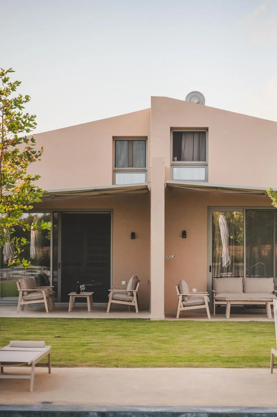 Completed in summer 2025 and framed by a lovingly designed garden, the estate comprises six elegantly furnished houses with thoughtful comforts as well as a spacious pool area. Its gentle architecture blends harmoniously into the landscape of the Trifillia coastal region. Just a five-minute walk away, Lagouvardos Beach is the shining highlight of Helichrysum Lofts – a wide sandy bay lined with pine trees, ideal for leisurely hours by the water, carefree swimming, and unforgettable holiday moments. When the wind picks up, Lagouvardos becomes a playground for surfers and experienced swimmers.