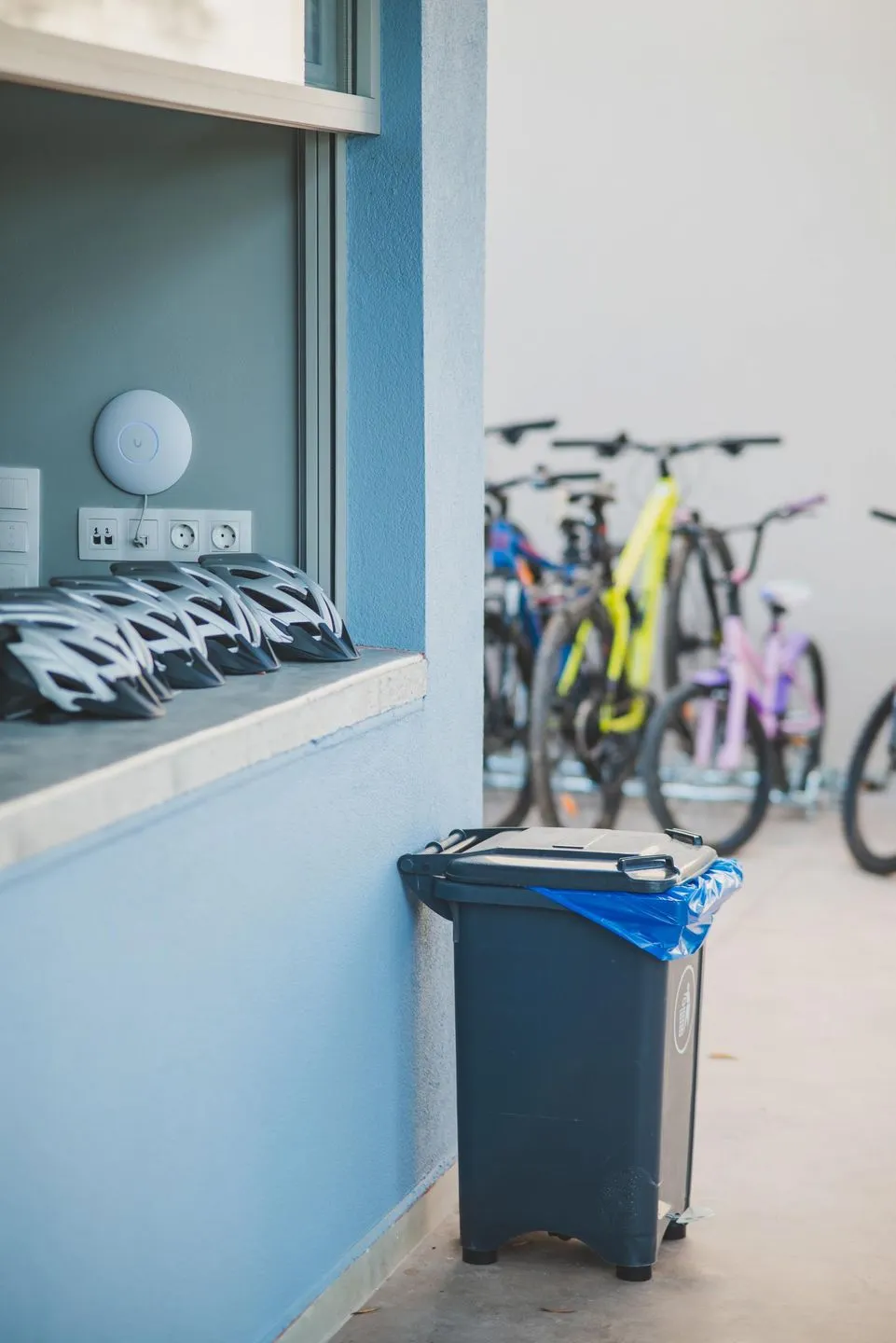 In the basement of the blue reception house, guests have access to a utility room with washing machine, iron, ironing board, and vacuum cleaner. A gas grill, bicycles, and mountain bikes can also be used upon request.